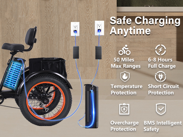 Adult Electric Tricycle: Featuring a high-power 700W motor and a removable 15AH battery, it offers a range of up to 43 miles. Its heavy-duty steel frame, LCD display, and versatile basket make it easy to use for adventures, camping, or everyday travel. It's an ideal gift for seniors and outdoor enthusiasts. It has a top speed of 18 mph.